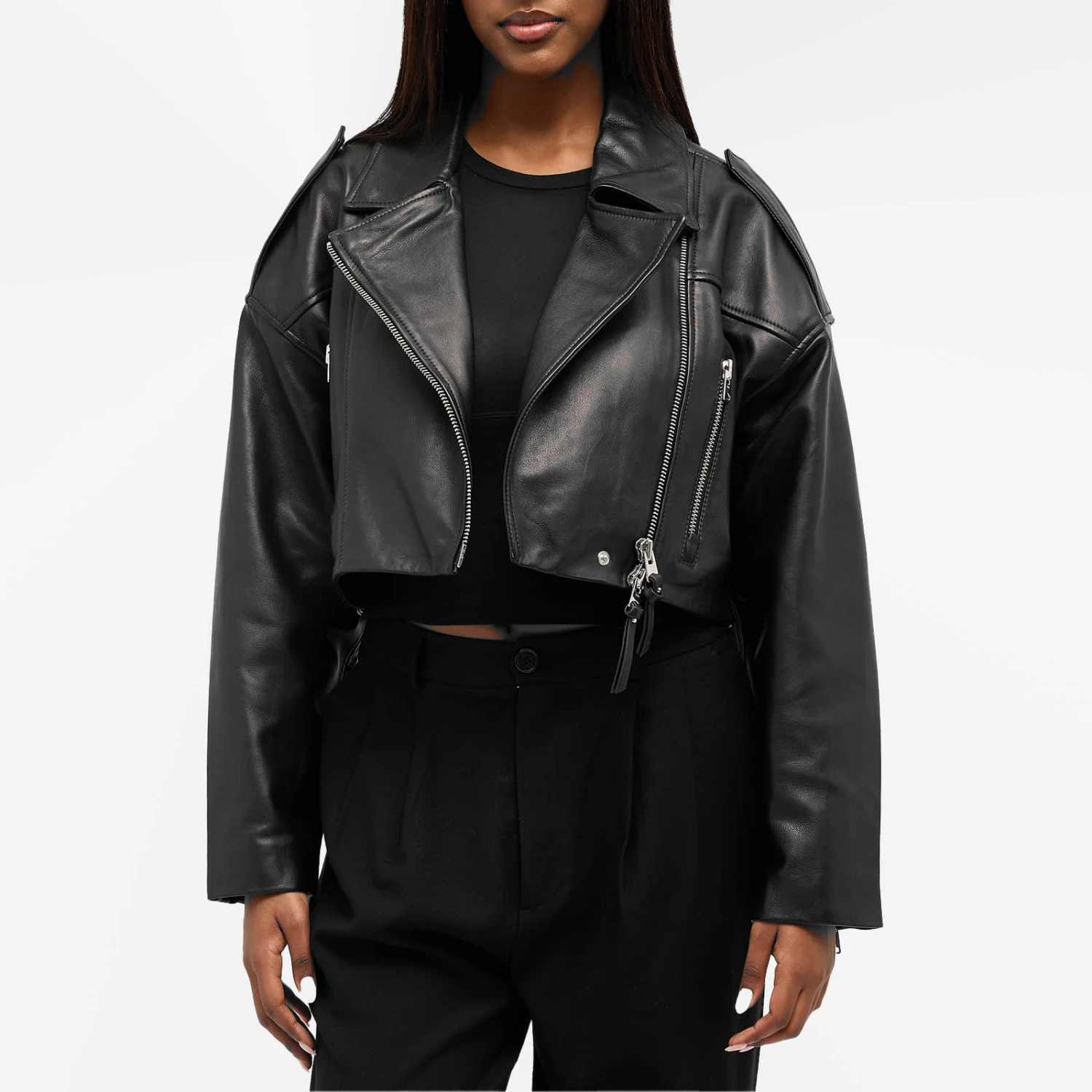 As part of a first-of-its-kind outerwear collection for AW23, this Remi crop leather biker jacket from Agolde and Shoreditch Ski Club’s collab is an instant, indisputable icon. Expertly crafted from luxurious leather, it’s structured with dropped shoulders and a shaped back yoke – while the usual hardware of biker jacket detailing punctuates throughout.