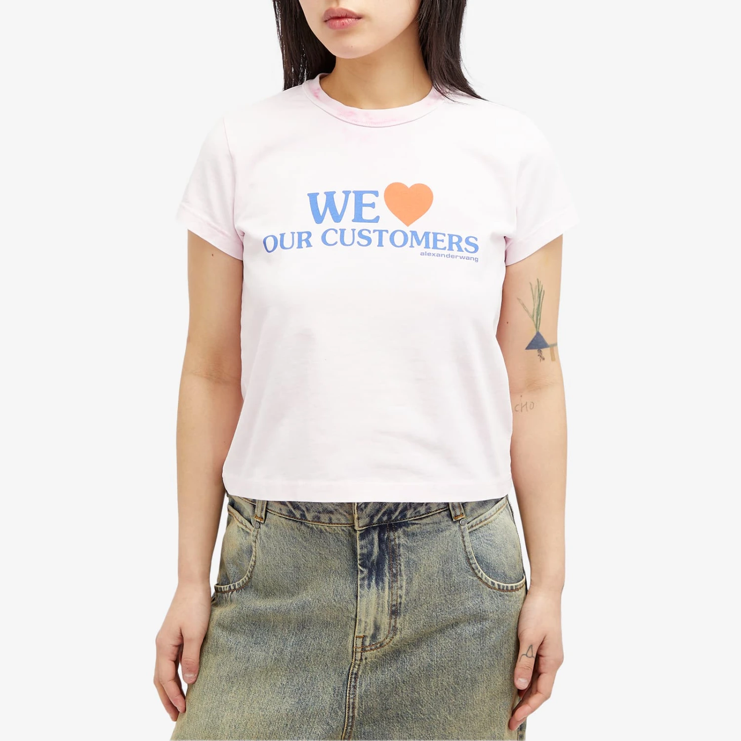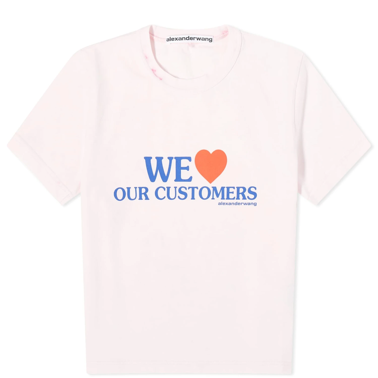 Alexander Wang adores its customers, and this t-shirt proves it. Perfect for longstanding fans of the label, it features a playful slogan printed on cotton that’s been overdyed and bleached, giving each tee its own unique look.