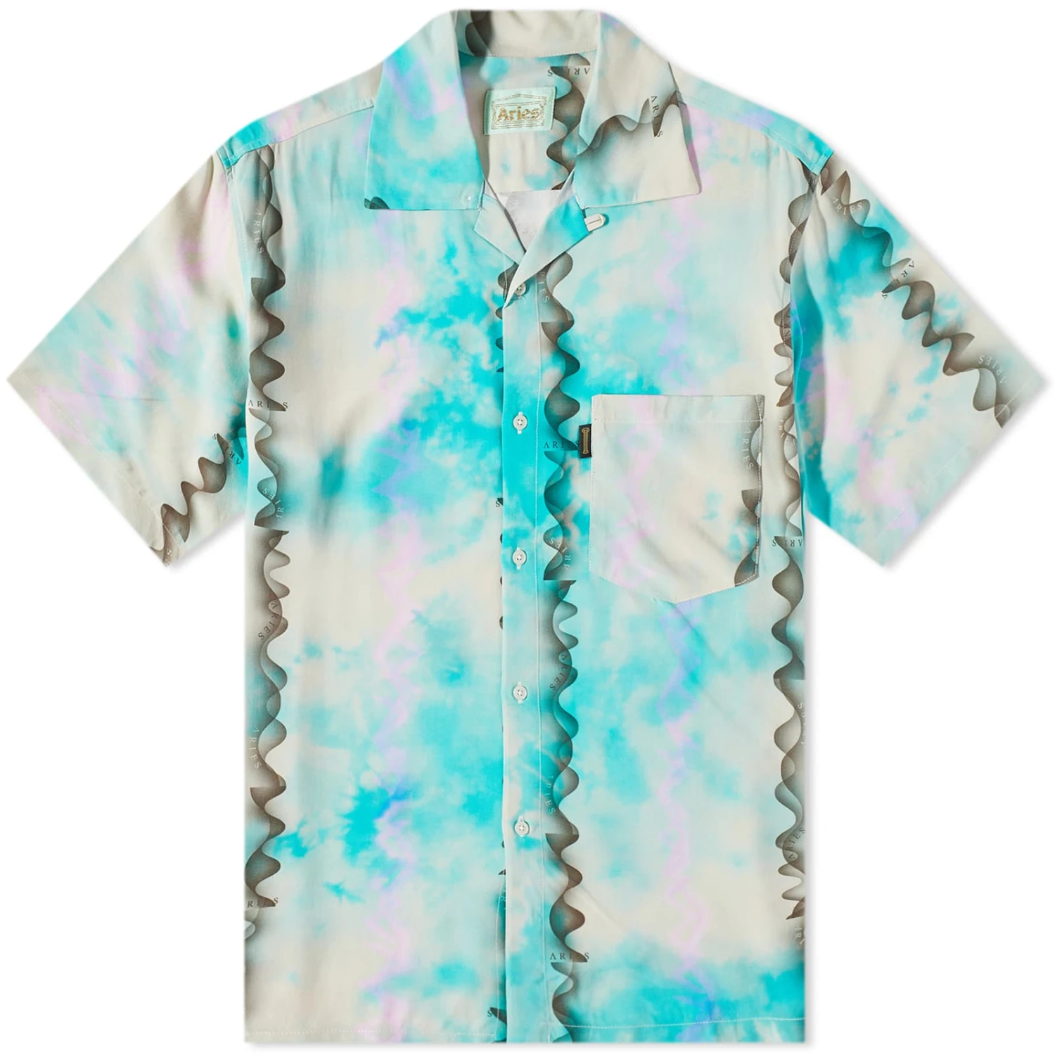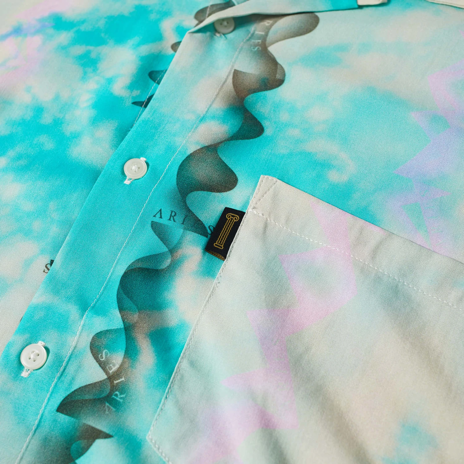 Sofia Pantera’s label Aries offers its own take on a classic summer-ready style with its Hawaiian shirt. This vibrant shirt features an all-over digital Dune print, interspersed with printed Aries logos. At the chest pocket, a woven tab detailed with the brand’s column motif signs off the look.