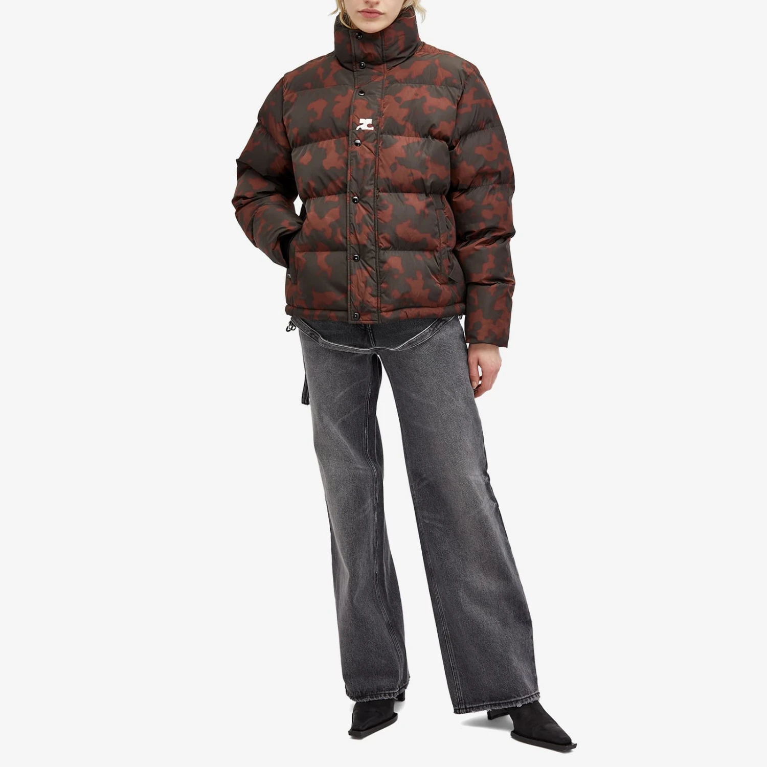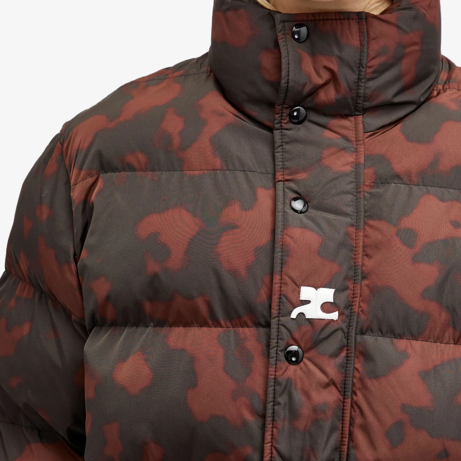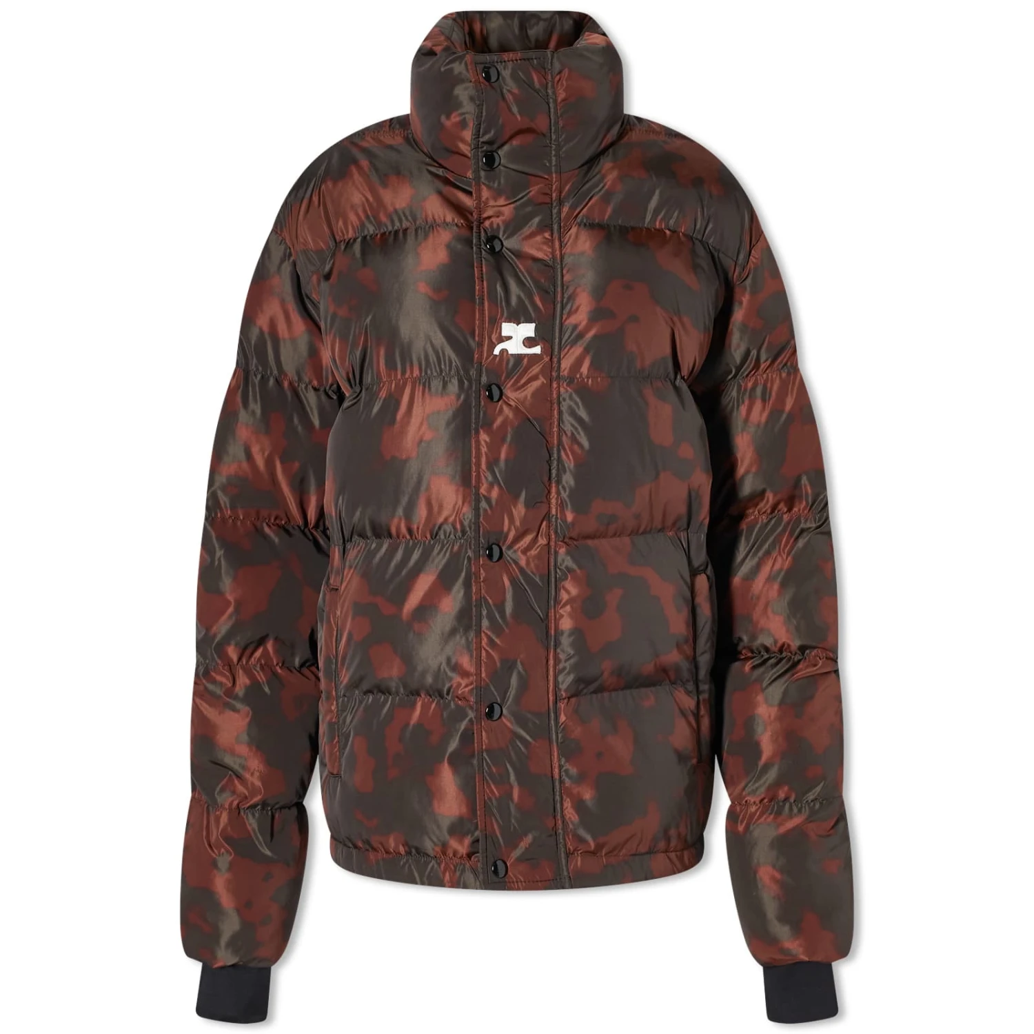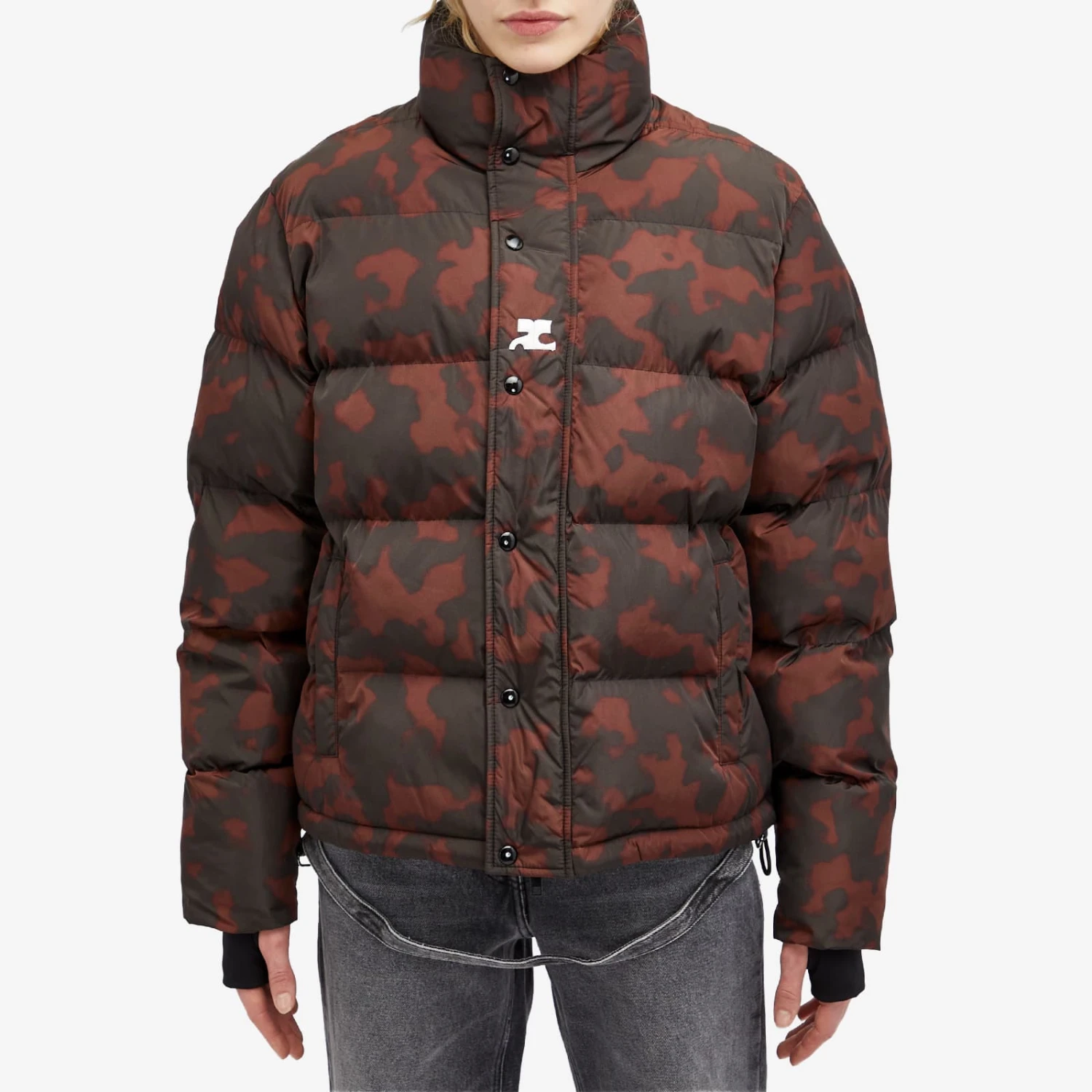 Courrèges legacy and roots in modernism and futuristic inspired design continues to capture attention, decades on since the brand first caused a stir in the ‘60s. Experimentation with fabrics continues to be key, with this puffer jacket taking on a unique tortoiseshell pattern with a sheen fabric. Generously padded, the cold doesn’t stand a chance with a high snap button neck and mitten style cuffs with thumb holes.
