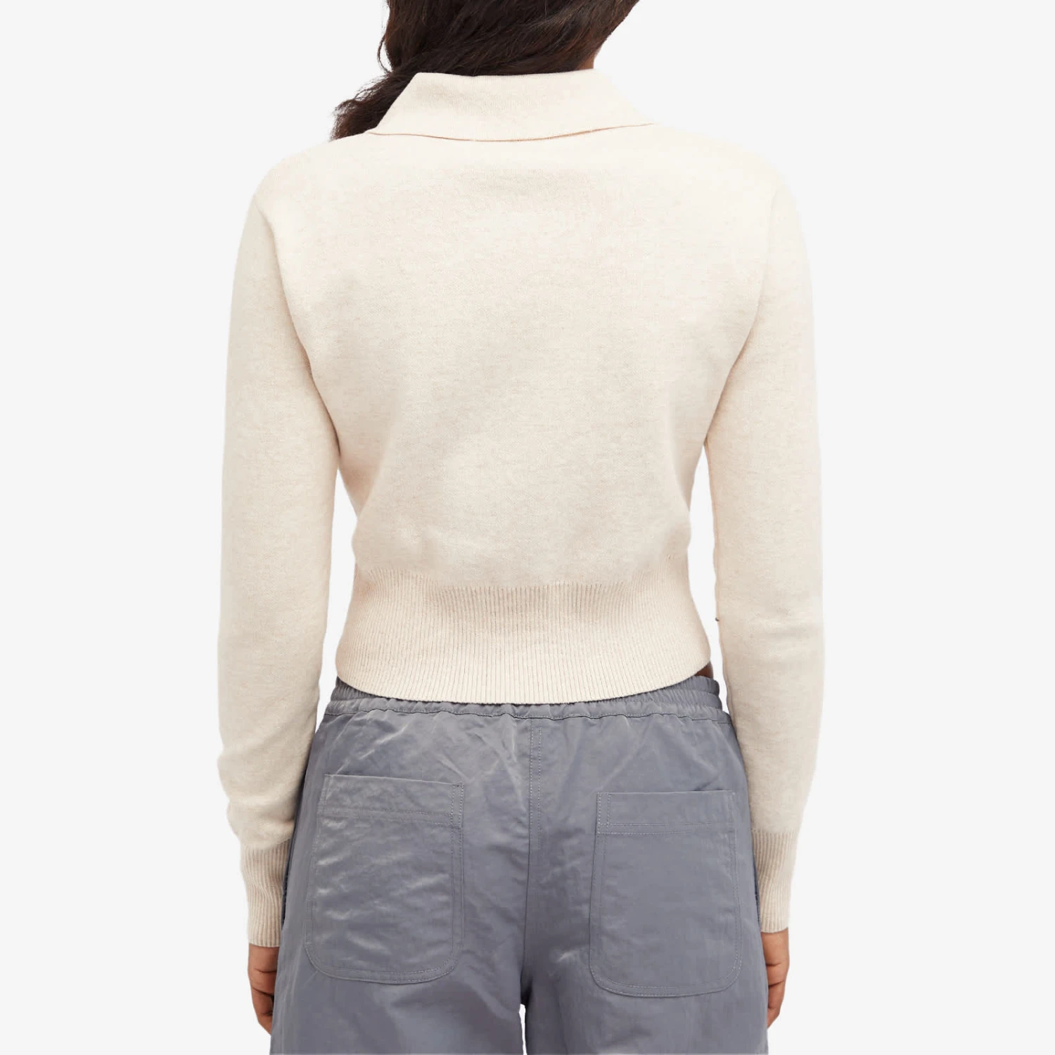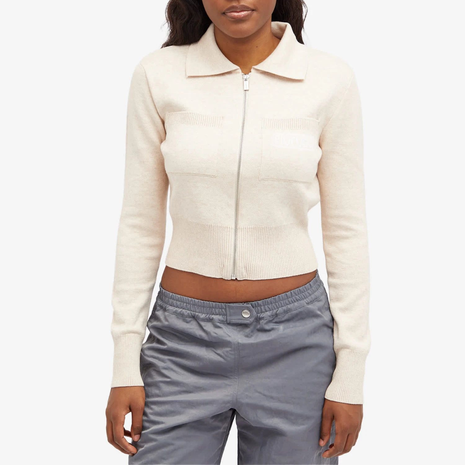 Fiorucci has decided to switch it up from its usual playful cherubs for more minimalist branding this season. We’re talking jacquard logos and engraved silver tone hardware. The fit? It’s slightly cropped and made from a plush cashmere mix that works wonders on its own or layered over a tee.