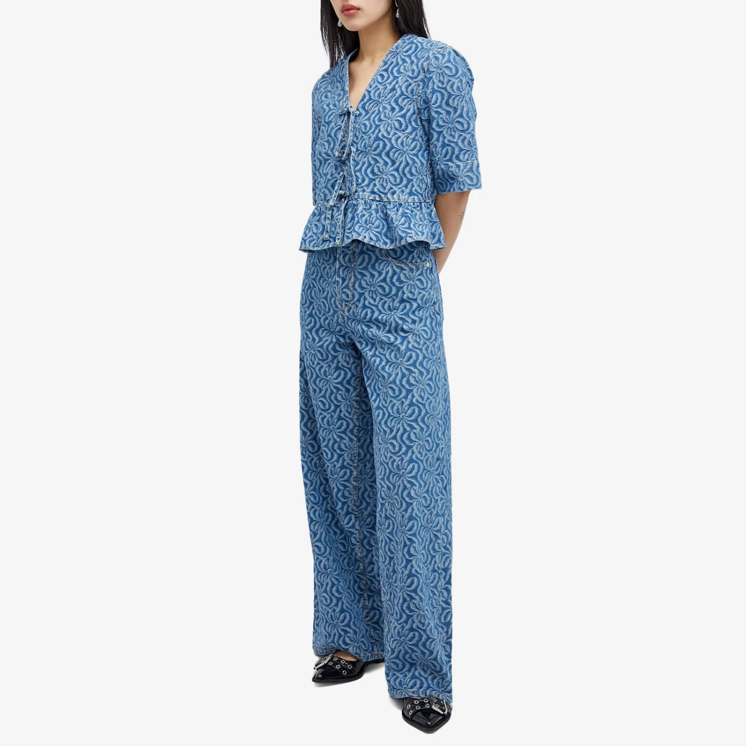 Keeping denim at the forefront of its latest collection, GANNI incorporates its love for print and everyday staples with its Wide Leg Jacquard Pants. Part of a co-ord, GANNI continues to revolutionise easy wearing staples for true Scandinavian look and feel. The wide legs and jacquard floral design showcases a fresh take on denim.