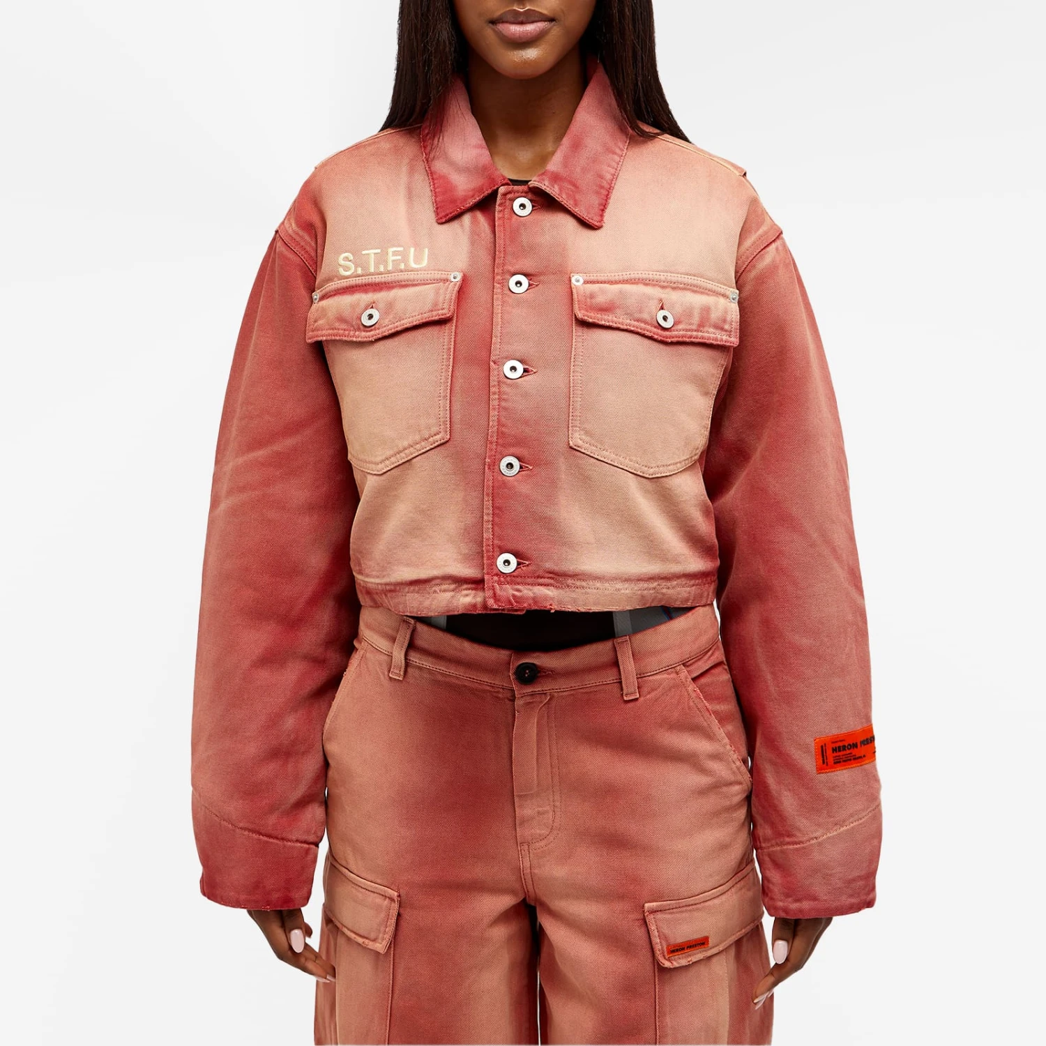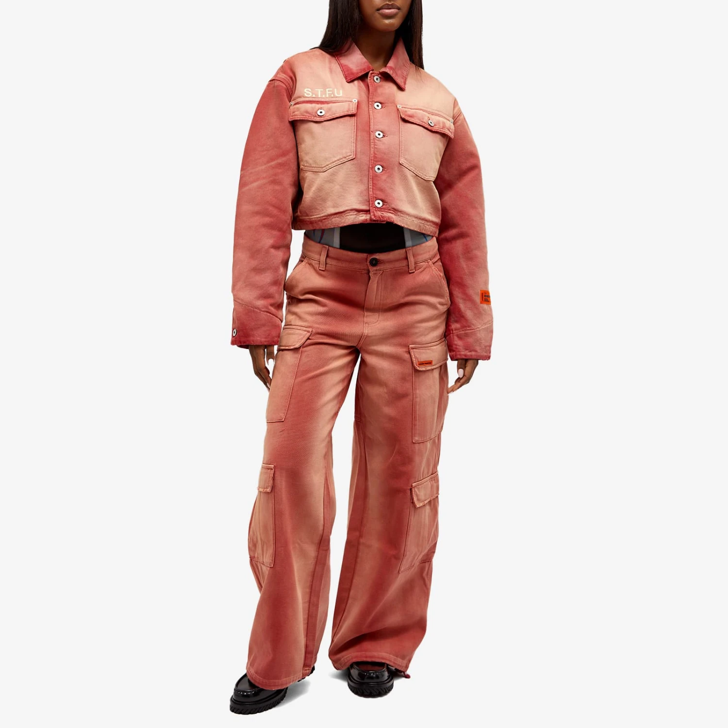 With a distinct utility and workwear aesthetic, Heron Preston is influenced by the grit of New York City. Adding a signature aesthetic to the iconic Denim jacket silhouette, this piece is defined by a bold abstract wash. With chest pockets to keep your belongings safe, the label’s signature orange logo patch is stitched on the sleeve.