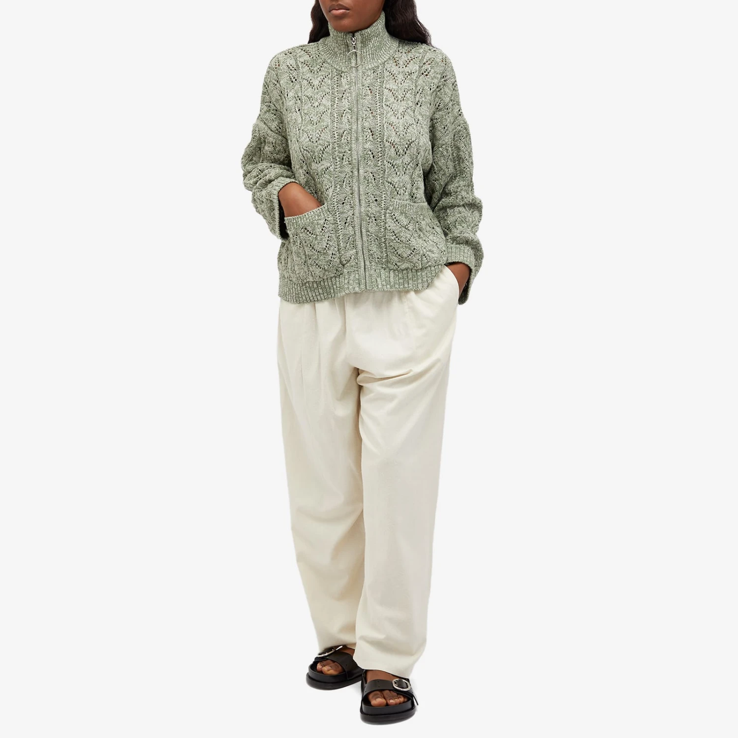 Oslo-based label Holzweiler are masters of texture, offering all kinds of intricate knits and patterns on their ready-to-wear pieces. The Tine Bloom Cardigan is a testament to just that, made from an open weave knit that is light enough to be worn in warmer temperatures and cosy enough to be an extra layer in the cold. Fastened with a zip front, it features a statement circle zipper and ribbed high neck. With a relaxed fit, it’s a timeless piece that has the lived-in feel of “an heirloom that’s been passed through generations”.