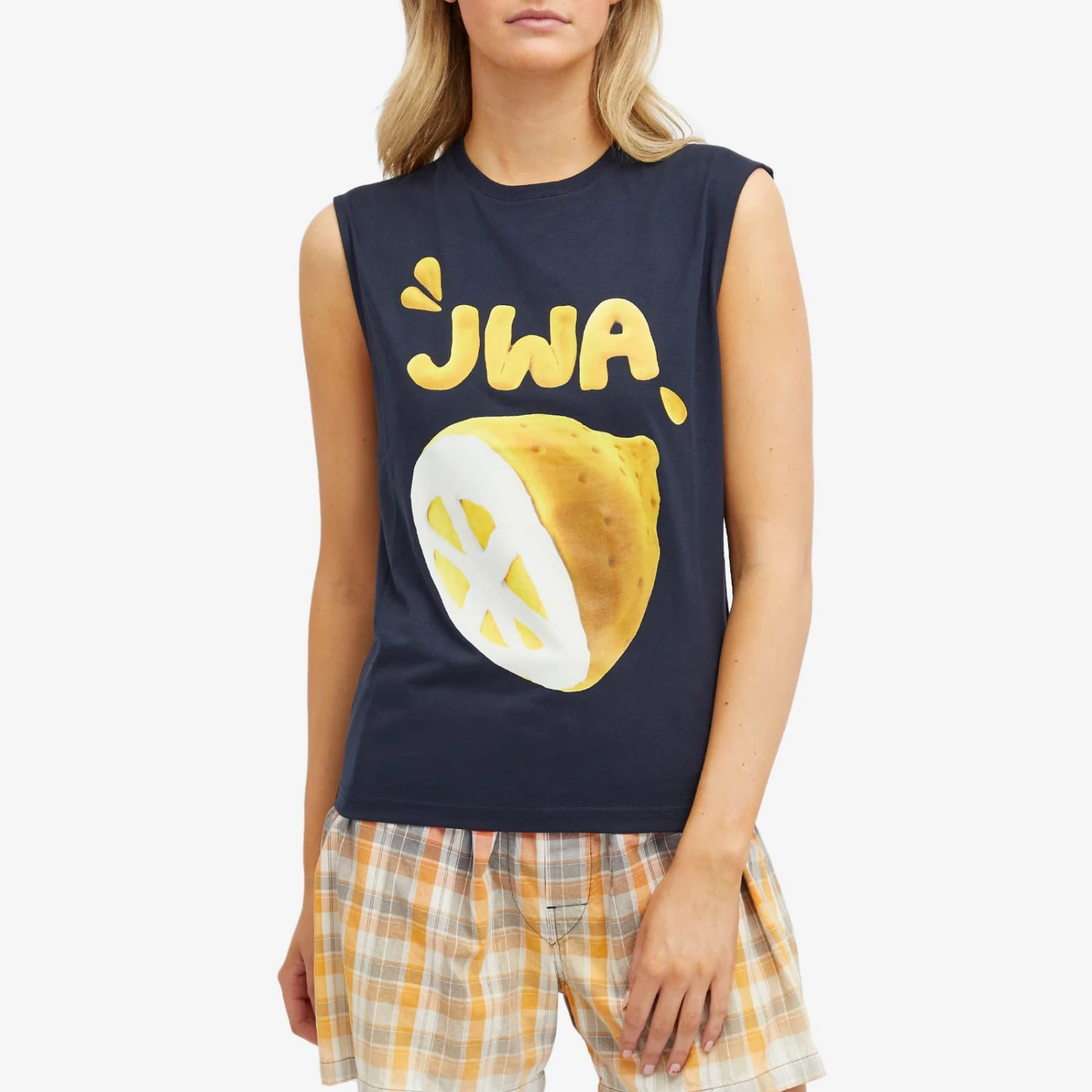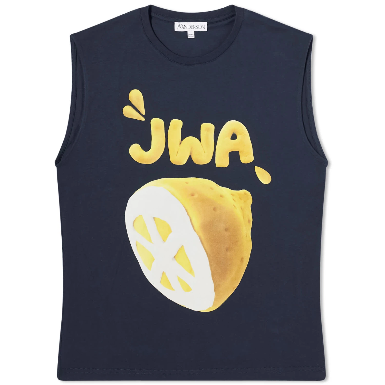 Squeeze some fun into your style with the JW Anderson Lemon Print Tank Top. This form-fitting top features a vibrant lemon print on the front and a juicy motif design on the back, making it a fresh addition to your graphic tee lineup.
