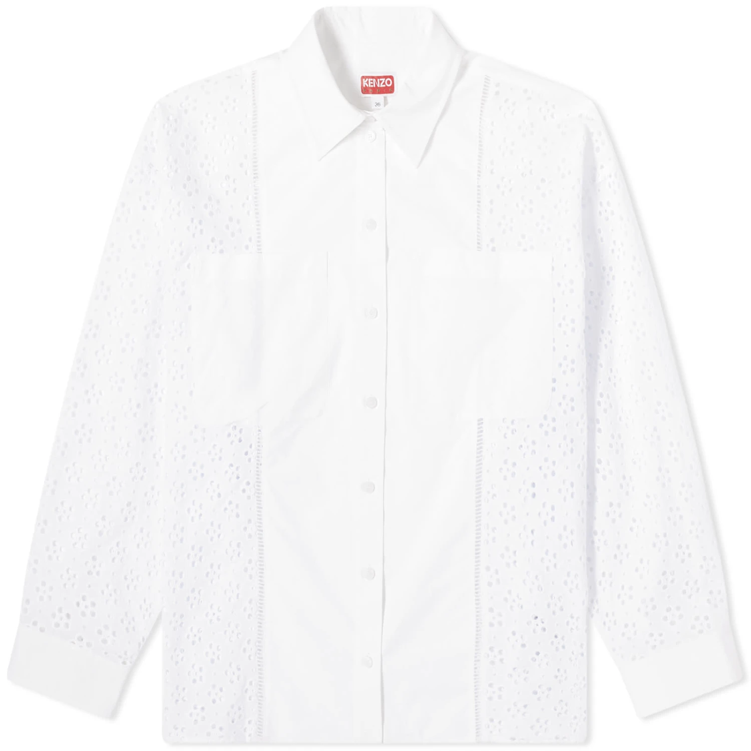 A Spring dream, this shirt from Kenzo is shaped from airy cotton with sweet broderie anglaise panelling at the sides and sleeves for an unexpected contrast. Complete with two chest pockets, it’s the perfect match for your favourite denim.