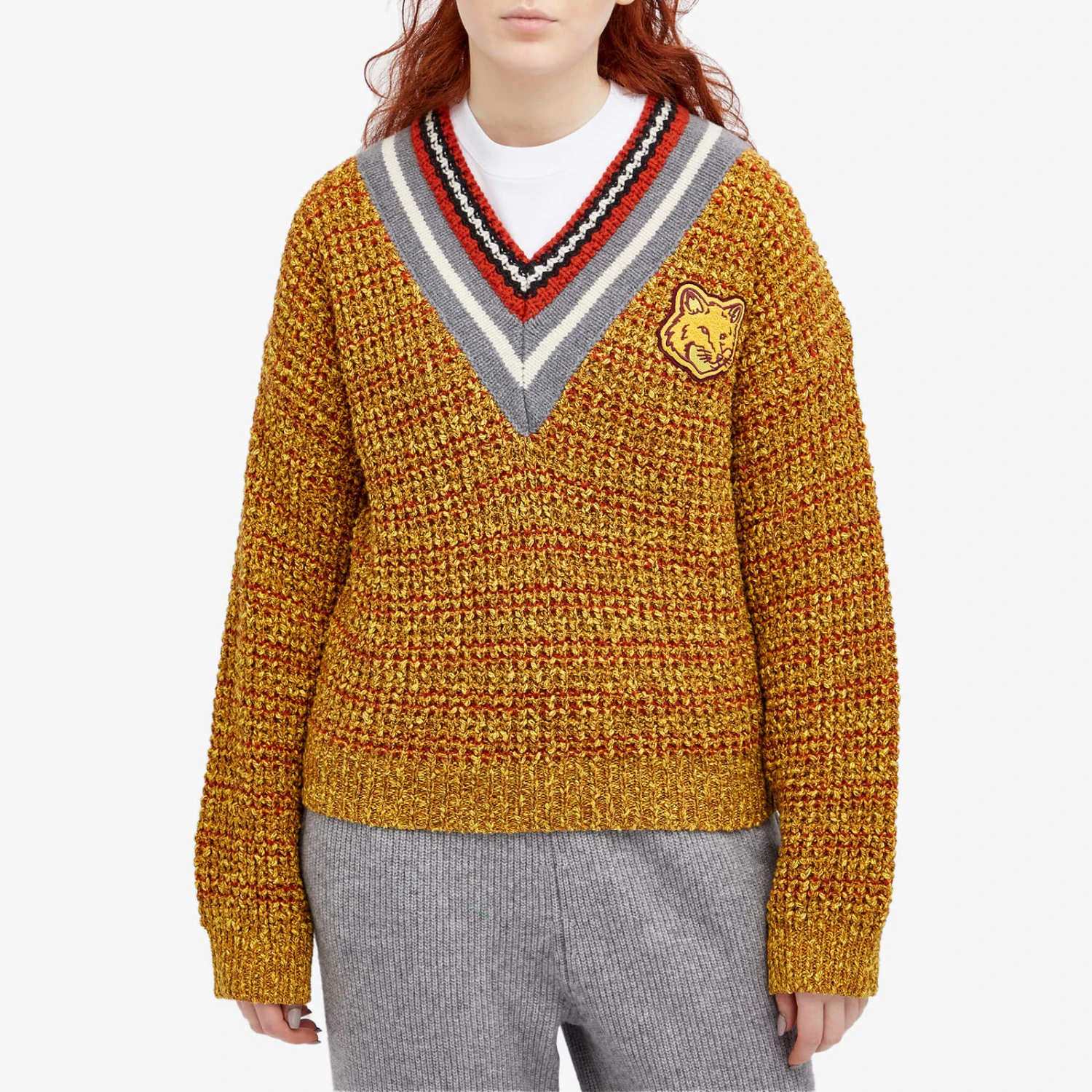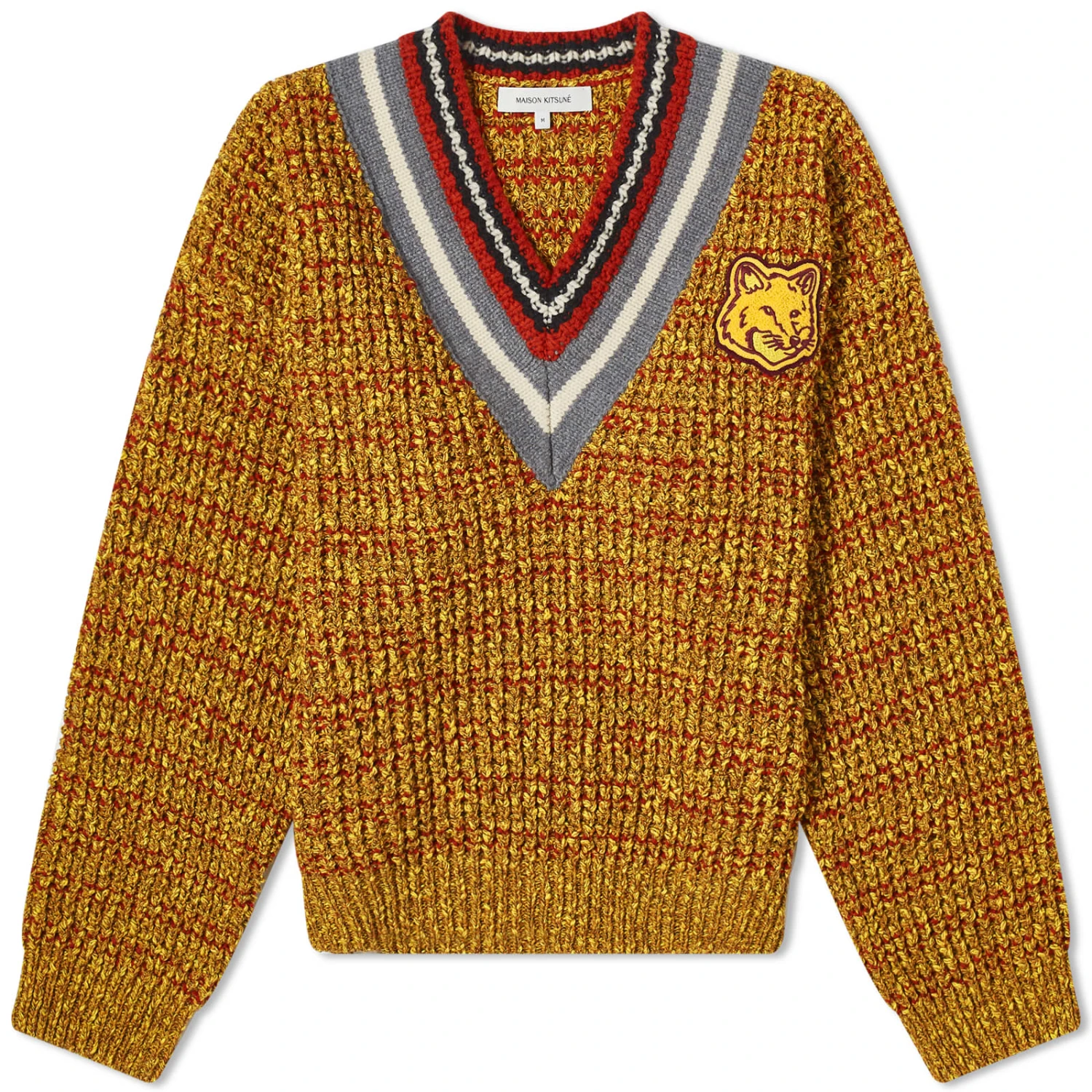 This season, Maison Kitsuné takes us on a nostalgic trip back to campus with the Crafty Comfort Jumper, reminiscent of classic varsity wear. Featuring a thick cotton-wool blend and a contrasting striped v-neck, this jumper adds a playful touch to our knitwear line-up. And of course, it wouldn’t be a true Maison Kitsuné piece without the brand’s signature fox mascot, prominently embroidered on the chest.