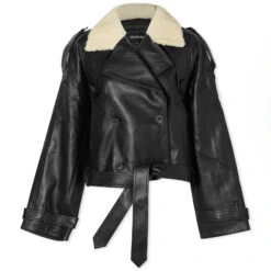 Whether you’re headed out for a date night, a day at the office, or a weekend away, Meotine’s Bobby jacket is the ultimate answer to your outerwear needs. This double-breasted style combines all the elements we love in a classic trench coat with a touch of edgy biker flair. Crafted from buttery-soft lamb leather, it’s elevated with plush shearling detailing at the collar, as well as a waist belt and striking shoulder and cuff accents.