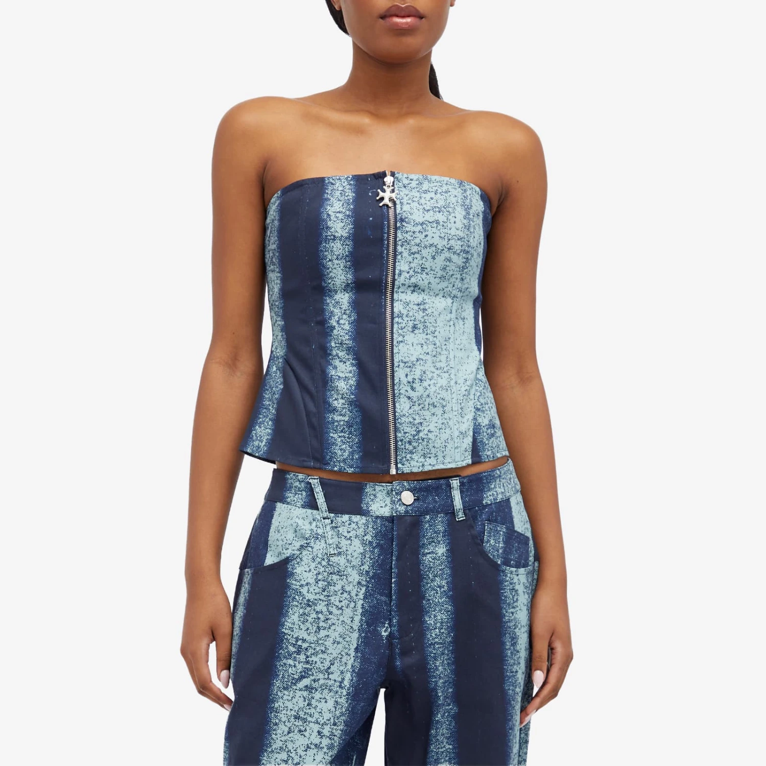 Crafted to accentuate your shape, the Riley Corset from LA-based brand Miaou is the answer to our summer prayers. This super soft corset features an exposed front zip with a pull charm, adding a sultry touch. Pair with denim jeans for a double whammy that will attract more compliments than ever.