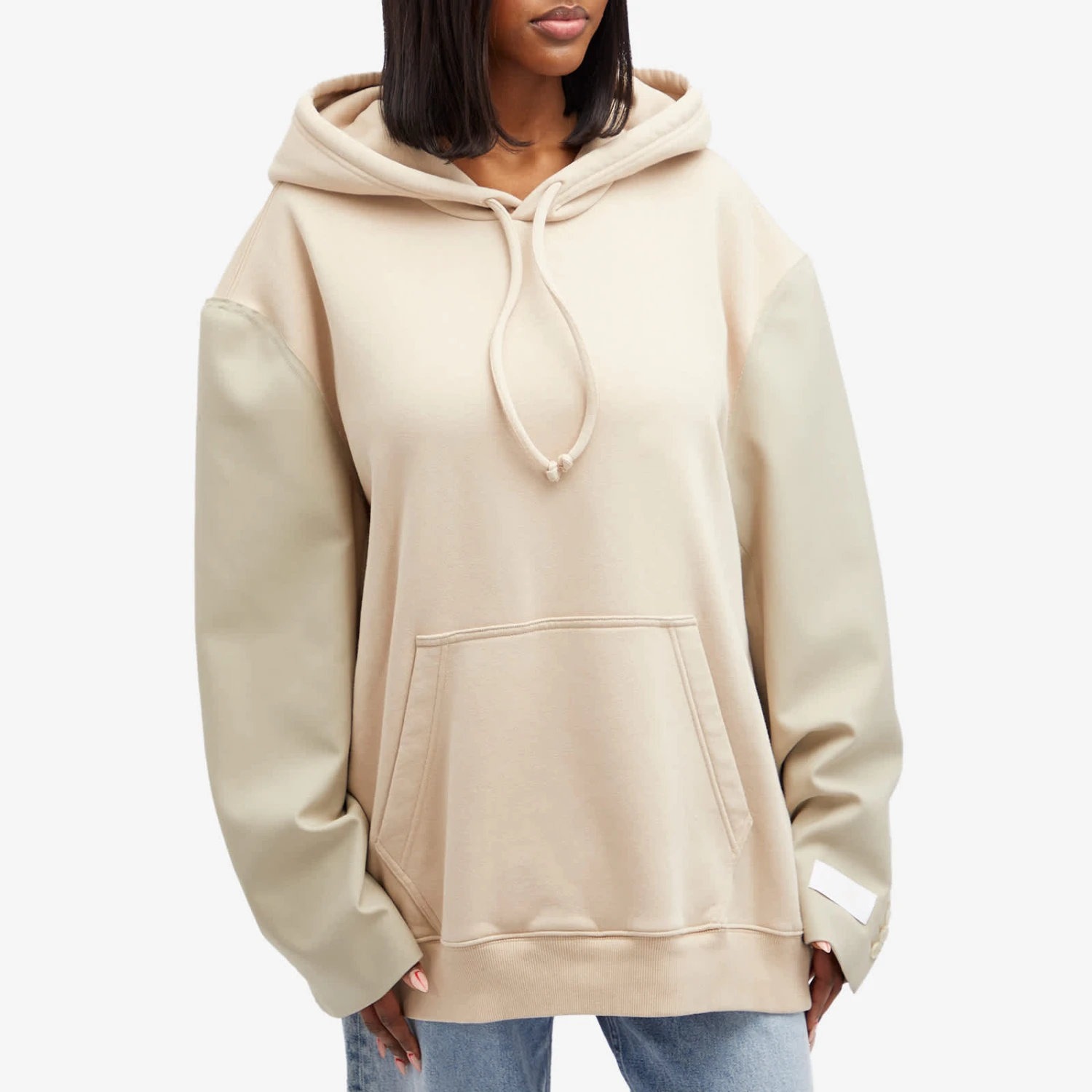 Under the creative direction of John Galliano, Maison Margiela’s diffusion line, MM6 plays with surfaces and perception. Off duty inspired, this hoodie is designed with a jersey fleece. With a minimalist aesthetic, the label’s numeric logo is stitched onto a patch on the sleeve..