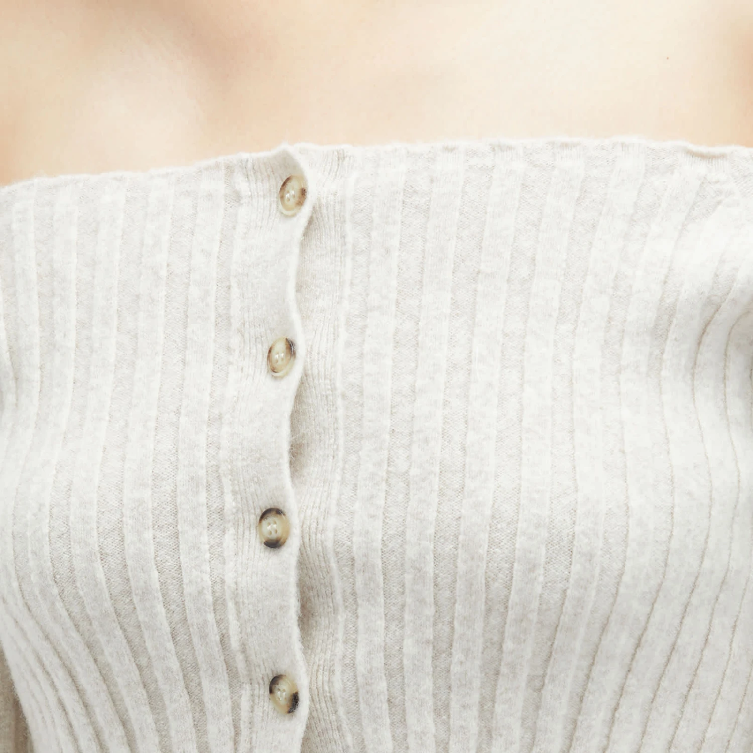 Sandra Sándor’s Nanushka embraces the unexpected with this Sidone Cropped Knit Jumper. Crafted from a luxuriously soft extrafine merino wool blend, its namesake cropped length is then contrasted with long sleeves and an off-the-shoulder neckline that’ll keep everyone guessing. What’s not to love?