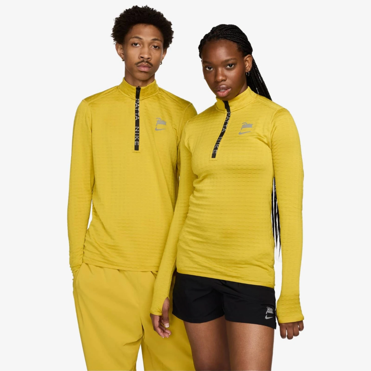 Amsterdam-based brand Patta bring their street-ready design to the performance prowess of Nike with the ‘Running Team’ collection. In homage to their hometown, the Half Zip Long Sleeve features a custom Jacquard-knit ‘X’ pattern to mirror the flag of Amsterdam. Perfect for on-the-go lifestyles, it’s crafted from stretchy, breathable fabric with a zippered funnel neck. Reflective co-branding features throughout to finish this legendary collaboration.