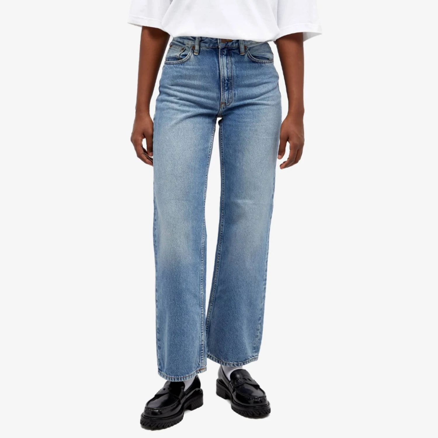Reminiscent of true 90s fashion, Nudie welcomes these clean Eileen vintage dreams into its latest collection. They’re a staple design that offers a loose, high-waisted fit that’s cut from authentic blue-wash denim. A marbled stonewash effect gives them a vintage, worn-in feel, synonymous with old favourites. Copper trims and orange thread detail sign them off for enhanced brand appeal, along with the coveted jacron patch at the back.