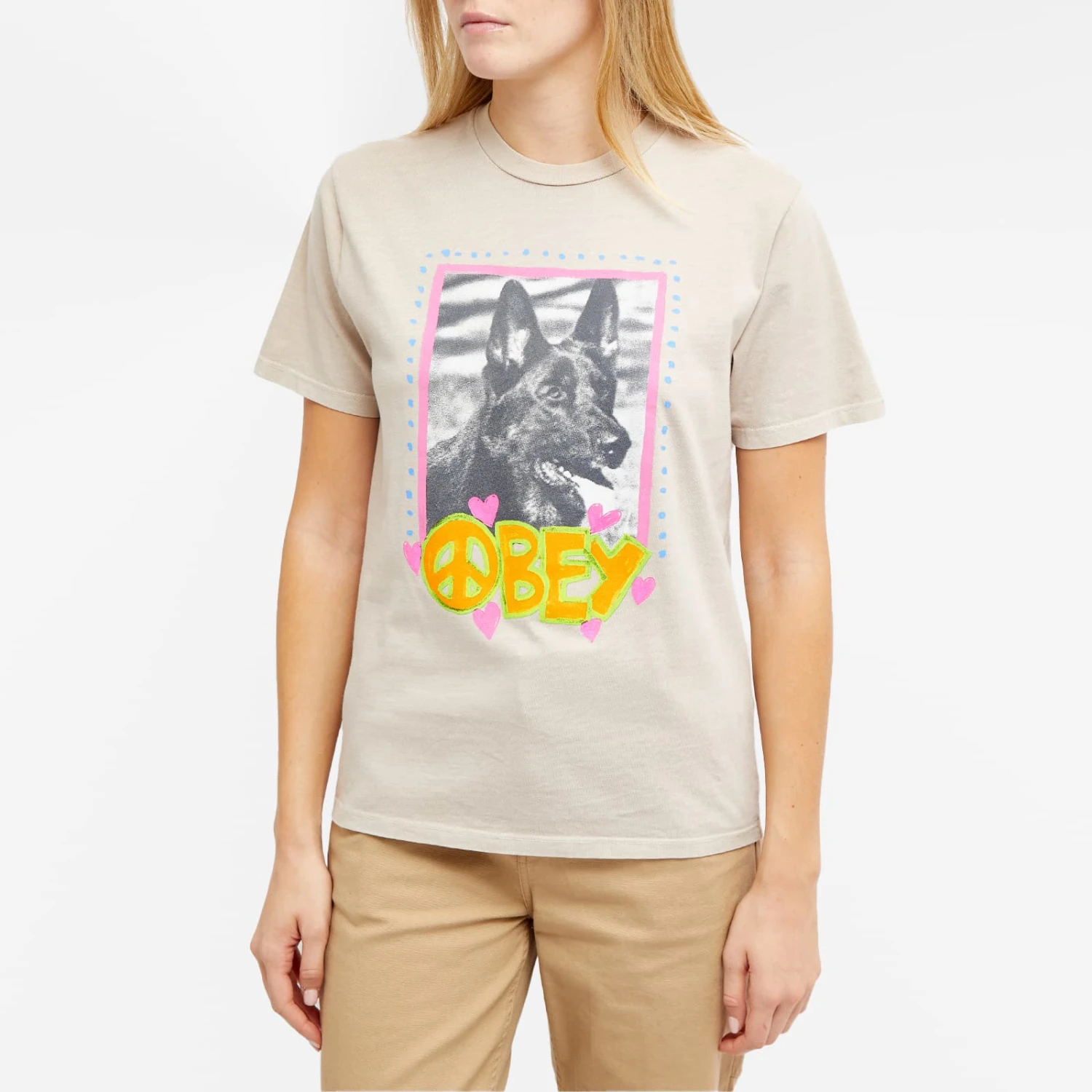 This Love Dog Logo T-Shirt exemplifies Obey’s knack for playful design, reimaging its signature logo with a vibrant colour palette and whimsical decorations that you’re sure to love. Oh, and that’s not to mention the namesake star of the show, who takes centre stage at the chest in a photographic print.