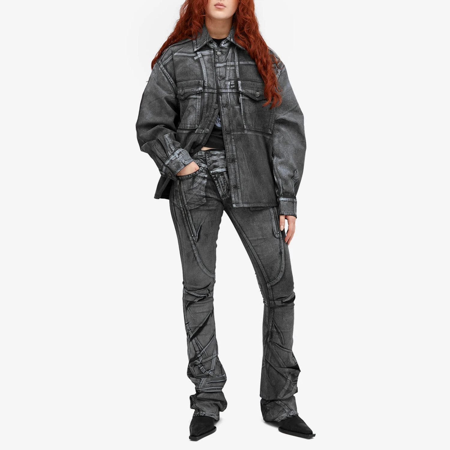 Everyone’s talking about Ottolinger’s rebellious design style, known for its distinct dystopian edge. The Big Waistband Drape Jeans are just as they sound – a slim-fitting style with an extra-long leg that’s been intentionally creased to create a draped effect. The creatively cut waistband and black rubber brand patch make these jeans the most daring in your collection.