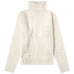 Our Legacy, a cult fashion brand rooted in Stockholm, embodies the essence of Scandinavian-cool. Its modern interpretation of classic styles shines through in this roll neck jumper. Crafted from an Italian alpaca and wool blend yarn, the jumper features an open crochet patchwork that adds texture and depth. With dropped shoulders and elongated sleeves, this will remain in your cold season knit collection for seasons and seasons to come.