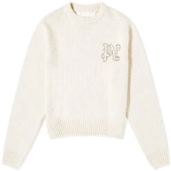 Step into the edgy luxury of Palm Angels’ Monogram Stud Sweater. Born from LA’s skate culture, this brand blends comfort and style. The sweater features crystal-cut logos front and back, adding a touch of glamour, while its rib knit design promises warmth.