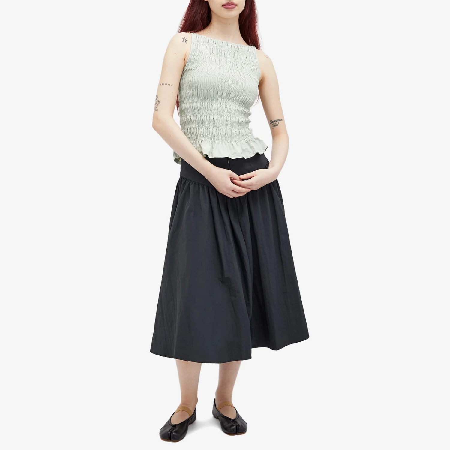 Isabella Weatherby’s Peachy Den champions individuality, creativity and skill when it comes to design. The Deba Nylon Sleeveless Top blends a distinct feminine aesthetic with sporty elements resulting in this eye-catching piece. The shirred detail and peplum hem adds dimension and texture while the silhouette serves to flatter for every occasion.