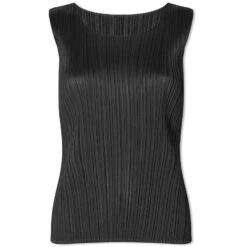 Rooted in Japanese minimalism and architectural influences, the Pleats Please Issey Miyake line transcends fabric into works of art. This vest top exemplifies the brand’s signature sewing technique, featuring directional origami-like folds that add depth and dimension.