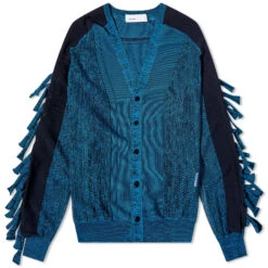 This unconventional take on a cardigan could only come from the creative mind of Yasuko Furuta. It’s from the Tokyo-based designer’s label TOGA ARCHIVES, with panels of space dye and open knit patchworked together. Block coloured sleeves form a backdrop for the main talking point – that fringing.