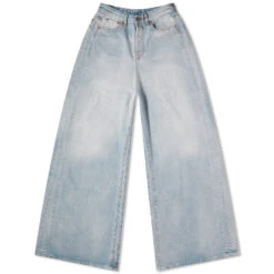 Forgoing trends in favour of evergreen style codes, VETEMENTS’S unorthodox approach to high fashion continues with each collection. Playing with even bigger proportions for SS24, these Destroyed Jeans are cut to a wide-leg silhouette for a relaxed style. Given a light wash for a vintage aesthetic, a leather brand patch on the reverse is for a touch of brand identity.